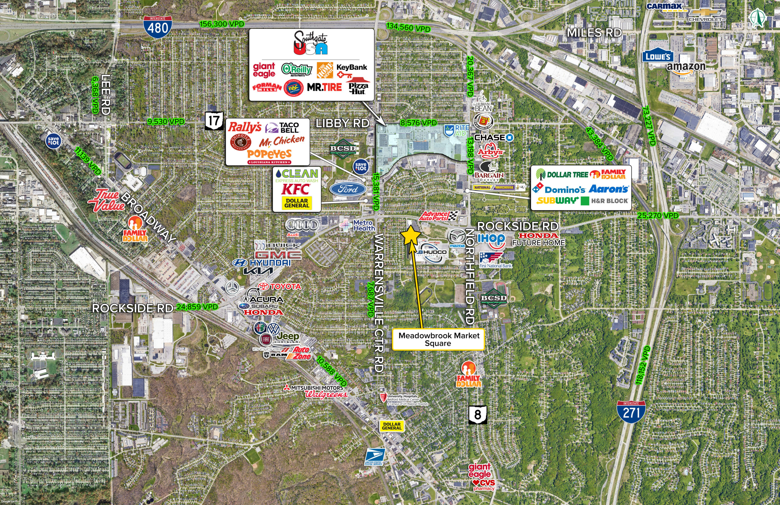 Immediate connectivity to major regional arteries, including I-271 and I-480, positions the center as an easy stop for both local residents and daily commuters traveling through southeast Cuyahoga County
